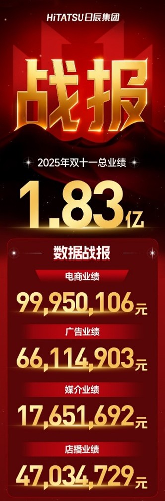 日辰グループ、2025年「ダブルイレブン」総合成績を発表:GMV1.83億元(約40.5億円)、支援ブランドの売上拡大を全面的にサポート