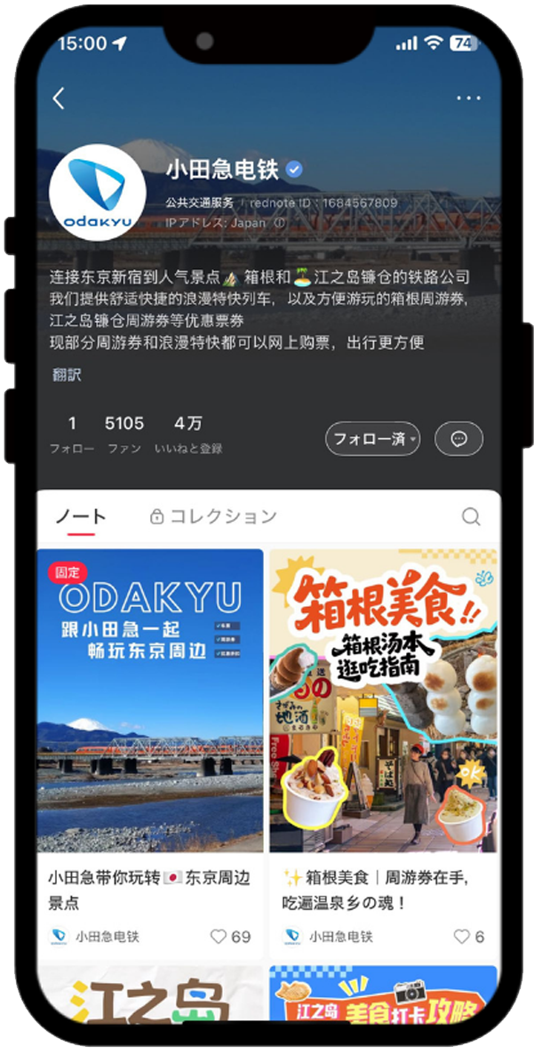 東京都・神奈川県を中心に鉄道事業・不動産業などを営む会社。箱根フリーパスやロマンスカー、江の島・鎌倉フリーパスの中国向けプロモーション支援として小紅書の運用をサポート。